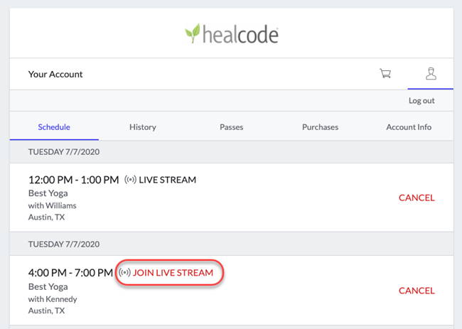 Or, you can tap Join Livestream in your schedule in the Mindbody app.