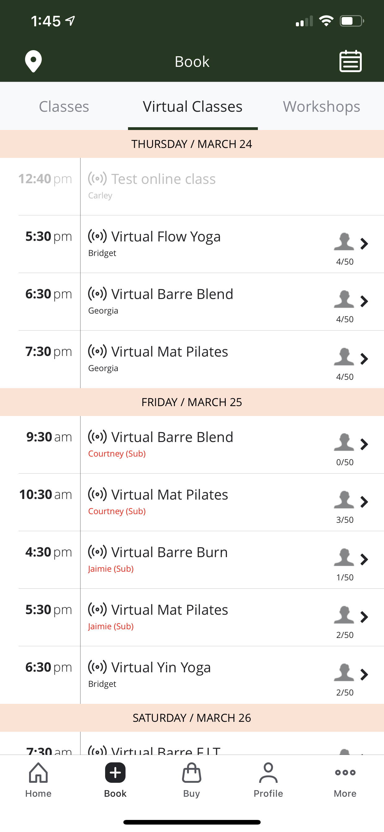 Finally, if you’re joining on the app, you can join a live stream class right from the Home screen